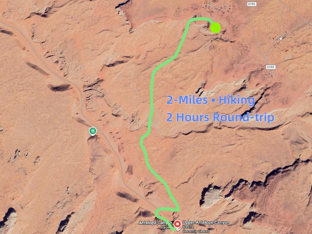 This is a full hiking tour, led by a guide to Upper Antelope Canyon, with a round-trip distance of 2 miles. There is no shuttle service.